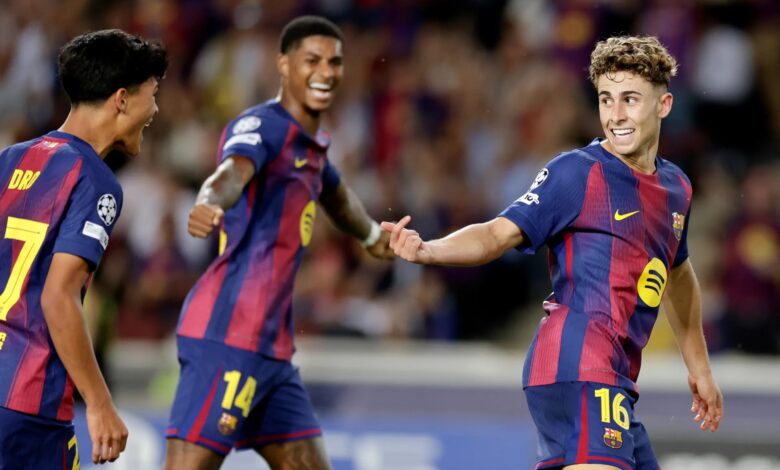 Los catalanes vencieron 6-1 al Olympiakos de Grecia con un triplete de Fermín López, un doblete de Marcus Rashford y un gol de Lamine Yamal.