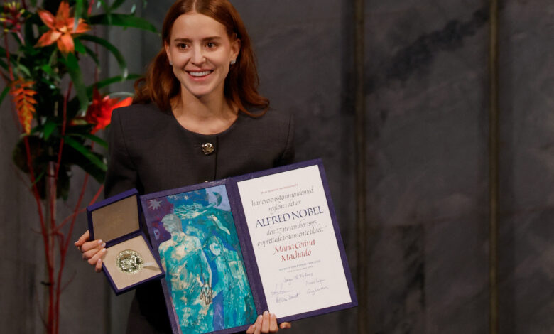 Hija de la opositora venezolana Machado recibe el Nobel de la Paz en su ausencia