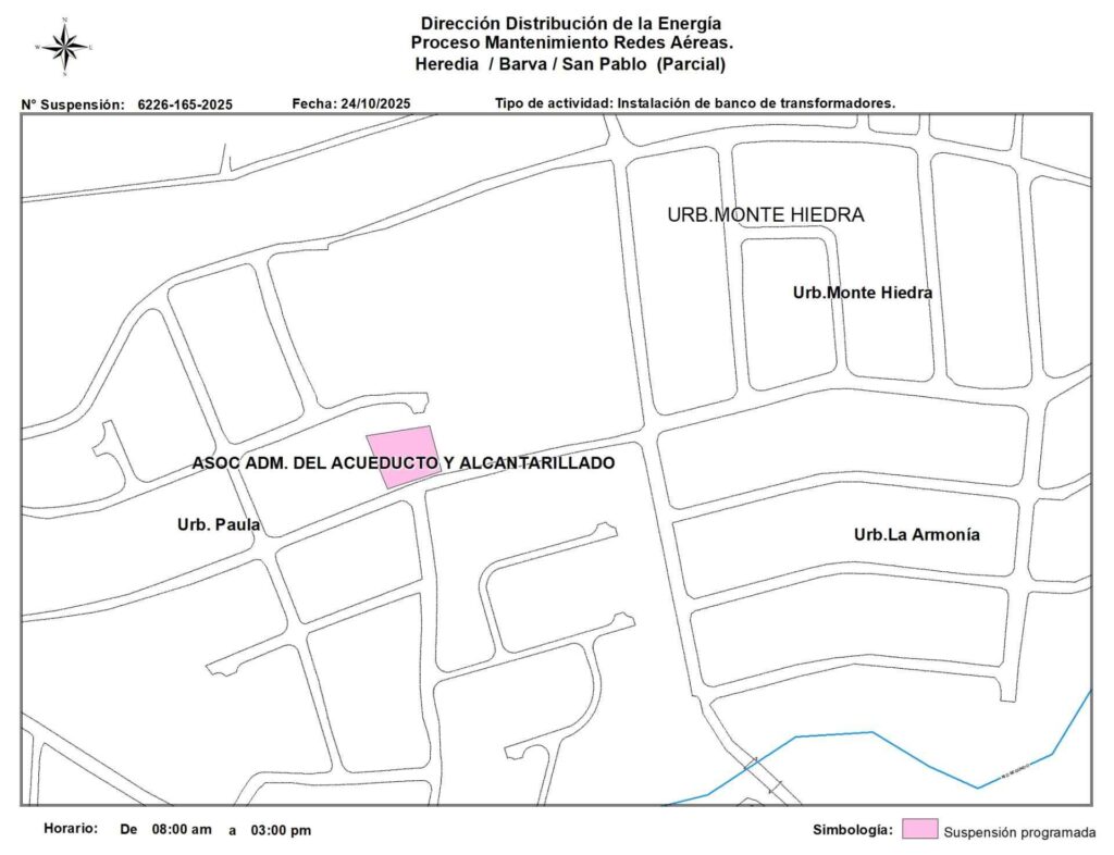 La interrupción eléctrica, será a partir de las 8 a.m hasta las 3 p.m específicamente 200 metros noroeste y 250 metros de la clínica de Barva.