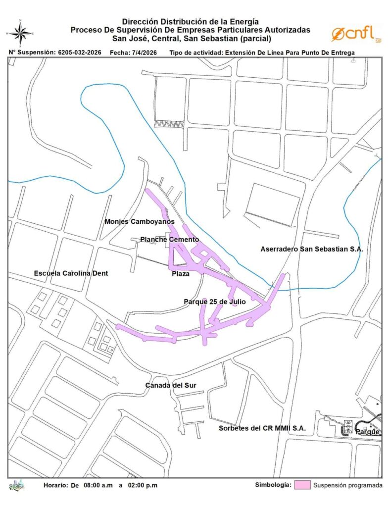 Mientras tanto en el cantón central de San José, San Sebastián y Sagrada Familia, el corte de luz se debe también a la construcción de obras eléctricas y será de 8:00 am a 2:00 pm.