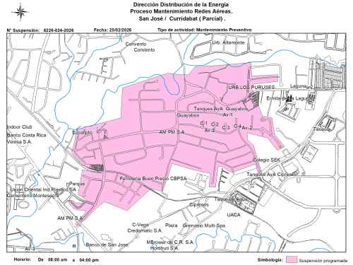 En Curridabat, específicamente en Granadilla, los cortes comenzarán a las 8:00 am y se extenderán hasta las 4:00 pm, ya que les darán mantenimiento a algunas obras eléctricas.