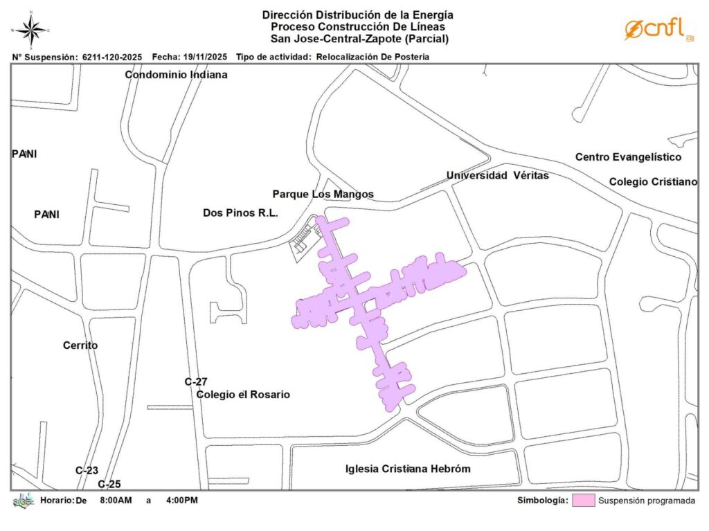 Zapote enfrentará un corte parcial de 8:00 a.m. a 4:00 p.m., mientras cuadrillas ejecutan labores de construcción de obras eléctricas.