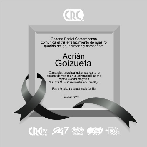 El cantante, compositor y guitarrista argentino‑costarricense, Adrián Goizueta Ramos, quién enalteció por años el ambiente artístico nacional, falleció este lunes 5 de enero a los 74 años de edad.