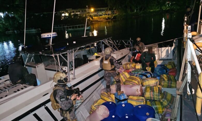 La embarcación fue llevada hasta el Muelle de Golfito, donde la Policía de Control de Drogas (PCD), en coordinación con la Fiscalía, realizó la recolección de indicios y el conteo de la droga.