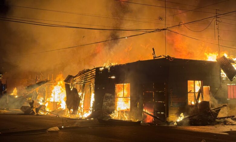 Entre la noche de este lunes y la madrugada del martes, se produjo un incendio que consumió cuatro estructuras de madera en Puntarenas, frente a la Municipalidad de dicha provincia.