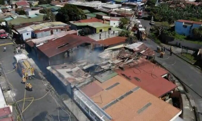 Según el reporte del Cuerpo de Bomberos y de la Cruz Roja Costarricense, el fuego inició a eso de las 10:35 a.m. y afectó una vivienda contigua, así como una ebanistería.