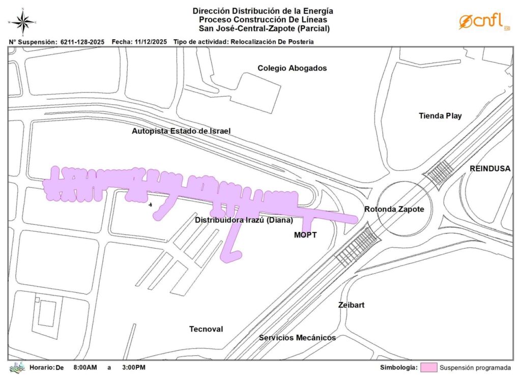 La Compañía Nacional de Fuerza y Luz (CNFL) suspenderá el servicio eléctrico este jueves 11 de diciembre, debido a trabajos programados en distintas zonas del país.