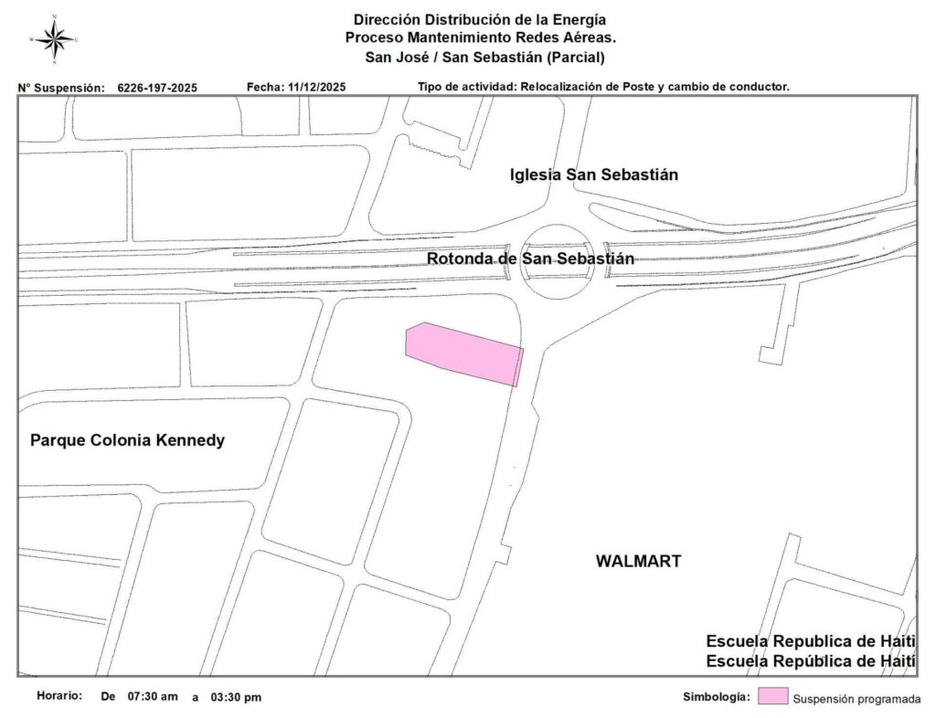 San José, específicamente San Sebastián, registrará cortes entre las 7:30 a.m. y las 3:30 p.m. por tareas de mantenimiento en obras eléctricas.