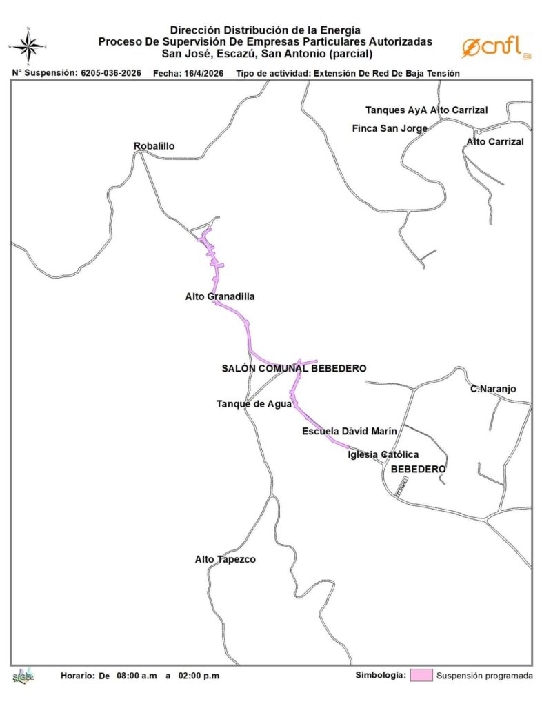 ¡Tome nota! Cortes eléctricos impactarán varios sectores de San José este 16 de abril