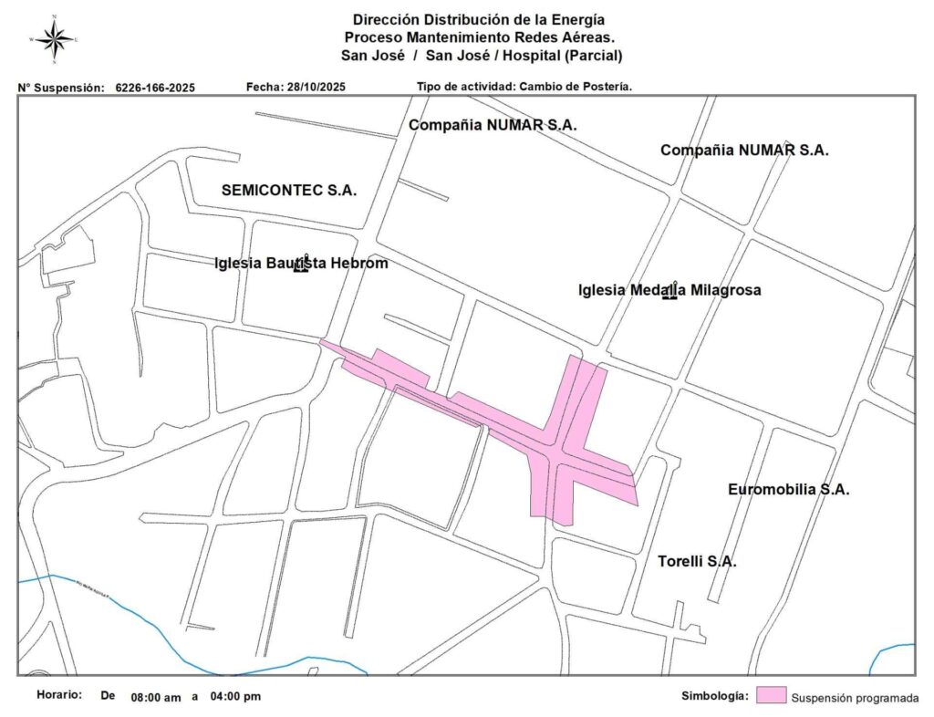 ¡Tome nota! Cortes eléctricos programados afectarán sectores de San José este martes