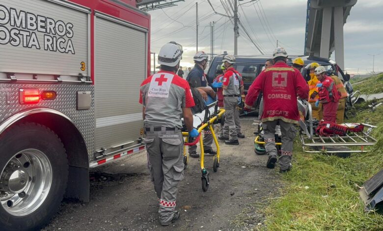Un aparatoso accidente de tránsito ocurrido este viernes en la ruta 27, a la altura de Multiplaza Escazú, dejó a cuatro personas heridas, quienes fueron trasladadas a un centro médico por la Cruz Roja Costarricense.