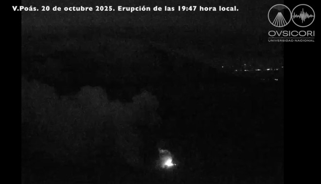 El Volcán Poás registró una pequeña erupción durante la noche del lunes 20 de octubre, según el Observatorio Vulcanológico y Sismológico de Costa Rica (Ovsicori-UNA).